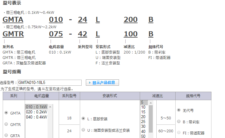 广州市唐安日本株式会社TSUBAKI椿本齿轮减速机GMTR075-42F120特点:低噪音/长寿命,通过低噪音设计和加工技术,实现了低噪音、长寿命体积小、重量轻通过采用铝框架电机,进一步实现了小型轻量。