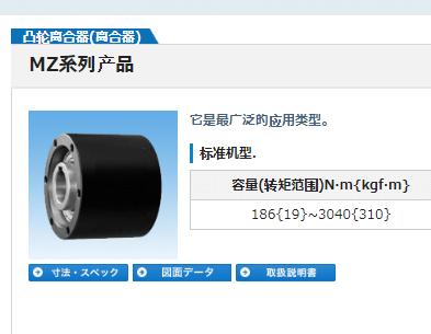 TSUBAKI生产的产品包括MZ系列、MZ-G系列、MG系列 、PB系列、200系列 、LD系列、MR系列、MI系列、MI-S系列、MX系列、BS系列、MG-R系列、BB系列 、BR系列 、MZ-C?MG-C系列、SR离合器等,TSUBAKI生产的产品包括MZ系列、MZ-G系列、MG系列 、PB系列、200系列 、LD系列、MR系列、MI系列、MI-S系列、MX系列、BS系列、MG-R系列、BB系列 、BR系列 、MZ-C?MG-C系列、SR离合器等,MZ系列 :充入润滑脂型。用途最为广泛。安装方便可靠。外圈已实施外周表面处理。 MZ-G系列 :充入润滑脂型。用途最为广泛。安装方便可靠。外圈已实施外周磨削。 MG系列 :结构紧凑,具有高扭矩容量。空转时,具有优异的耐摩擦性。 PB系列 :外圈为套筒,可方便地安装较小外径的链轮、齿轮、滑轮等。 200系列 :可直接安装于轴上的无内圈型。可紧凑地在链轮、齿轮等的内部进行装配。 LD系列 :可方便地进行安装和使用的经济型。 MR系列 :专用于外圈空转。空转过程中凸轮上抬浮起,不与内圈接触 MI系列 :可实现高精度分度进给。 MI-S系列 :采用实施了表面特殊硬化处理的凸轮,具有优异的耐磨损性。 MX系列 :进行高速分度时,可实现高精度进给。 BS系列:防止输送机反转的专用离合器。充入润滑脂型。中小型机型。采取三重构造防尘措施。 MG-R系列 :防止输送机反转的专用离合器。中速用 MG系列:凸轮离合器安装了储油器,维护方便。 BB系列 :在轴承6200号段内置了凸轮型号;